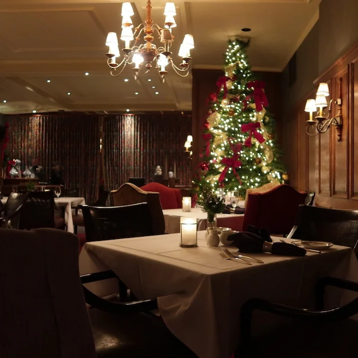 The Wisconsin Room - Once the dining room for immigrant workers at Kohler Company, The Wisconsin Room features farm to table dishes guided by Wisconsin delicacies and local farmers. The menu changes often and each menu notes the farms and purveyors that they collaborated with. We did a little surf and turf starting with an incredible scallop appetizer, wild mushroom risotto, and then shared filet mignon. Since we were sharing everything, the kitchen was really thoughtful and split everything for us. Every bite was incredibly rich and decadent; zero room for dessert but it was an incredible meal. The dining room is has a very romantic feel in the evening. Adorned with tapestries, chandeliers, coffered ceilings, white table cloths, and just for the holidays a couple of massive Christmas trees trimmed with glittering lights and garland really tie the room together.