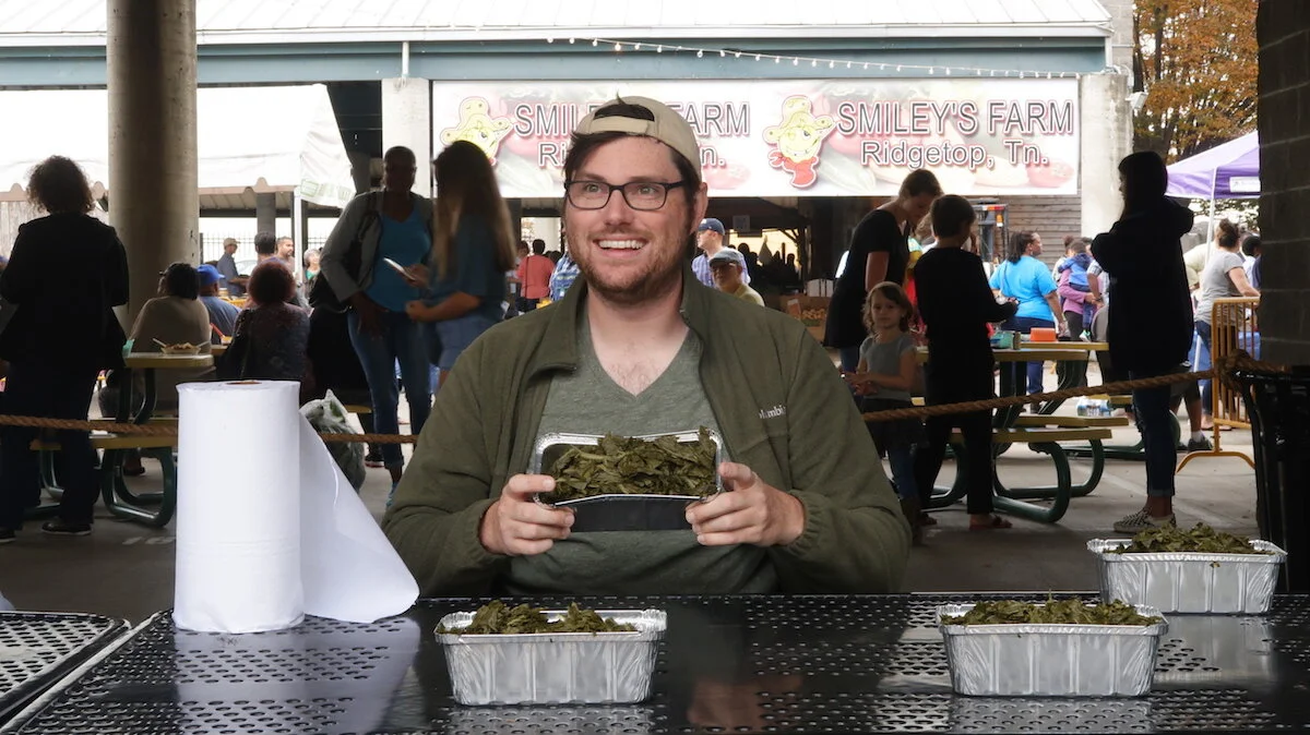 For something different, I love going to the Farmers Market in Nashville. It’s open daily and a fun place to explore. Stroll the outdoor market stalls for beautiful produce, baked goods, cheese, meat, cooking demos, and more. We came across a collard greens eating contest on our last trip and our friend Josh jumped at the chance to enter. He sadly did not win.