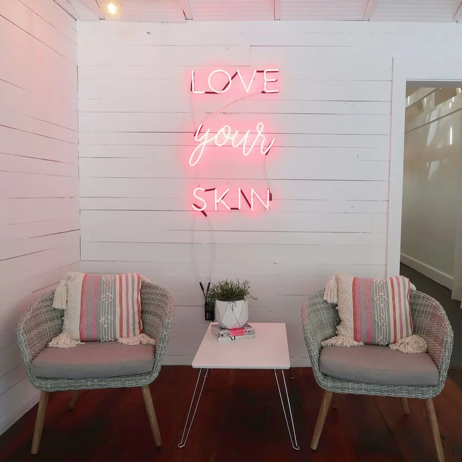 They offer a variety of treatments available depending on the time you have and your needs. I went with the Detox & Glow Facial with personalized peel and added on some brow shaping and Bio-light therapy. While you fill out an information sheet, an esthetician will meet with you to find out any issues you’re having and what essential oils you enjoy. Next, you head back to the treatment room, a couple even over look the marsh. The whole space is crisp and clean, just like One Love’s signature shades of pink and white.
