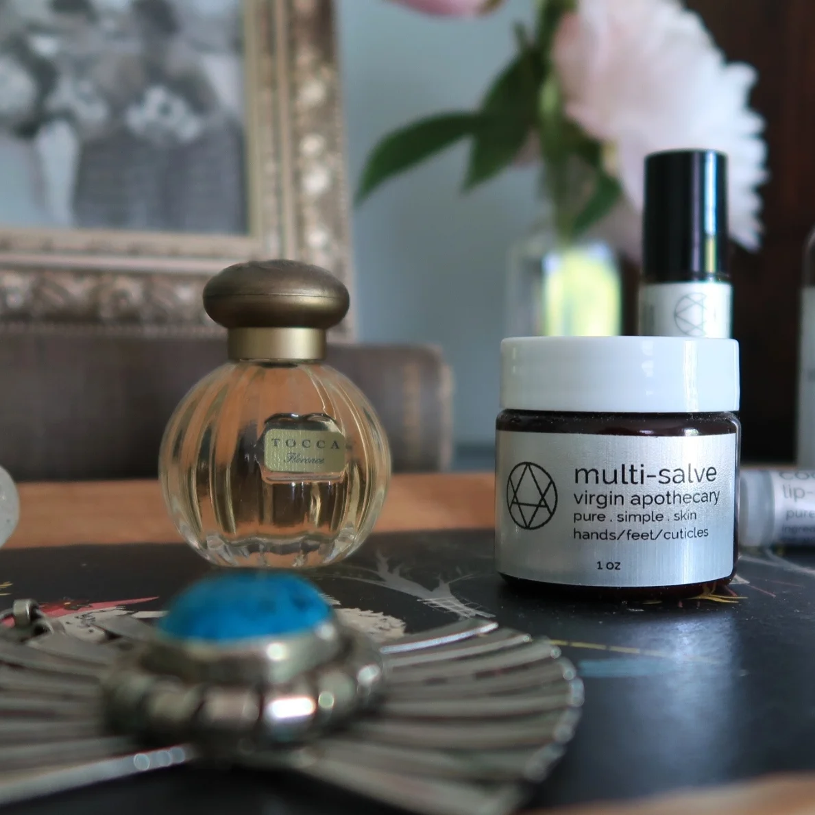 My skin can get pretty dry, my hands especially, so a rich salve is a necessity. My lips are always chapped, no matter the season which is horribly annoying so I need to have chapstick at all times. I was home in St. Simons Island a few months ago shopping around at the market and spent a lot of time with Gina looking through her products at the Virgin Apothecary booth. Gina has a wide variety of products ranging from essential oils to serums, soaps, salves, and more. Everything is affordable so I ended up buying just about one of everything in a tester size. I loved it all but for my Tucson trip, I packed a few essentials, multi salve, lip balm, hydrating mist, and the facial serum roller to save space in my luggage.