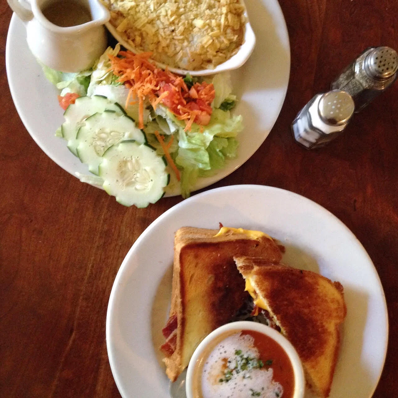 I had to have the comfort food combo, grilled cheese with bacon with a cup of tomato and celery soup, and Celia enjoyed one of the South's famous casseroles, Hot Chicken Salad complete with a potato chip crust. We hadn't seen each other in months so we took our time catching up and savoring every bite.