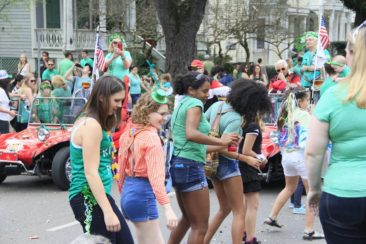 The Irish Channel Parade is the OG and viewed as the main event. This parade is fun. I don’t know why I was surprised, I mean, it's essentially Irish pub turned giant block party roaming through the streets. You’ll see some wild floats and tuxedo-clad men tossing Irish stew ingredients, and trading kisses on the cheek/hand for roses. Seriously, watch out for flying cabbage heads. I love this parade because while there’s tons of energy, people dancing and drinking, we were still able to find a grassy spot in the sun to spread out with a cooler of beer and had a fantastic afternoon.