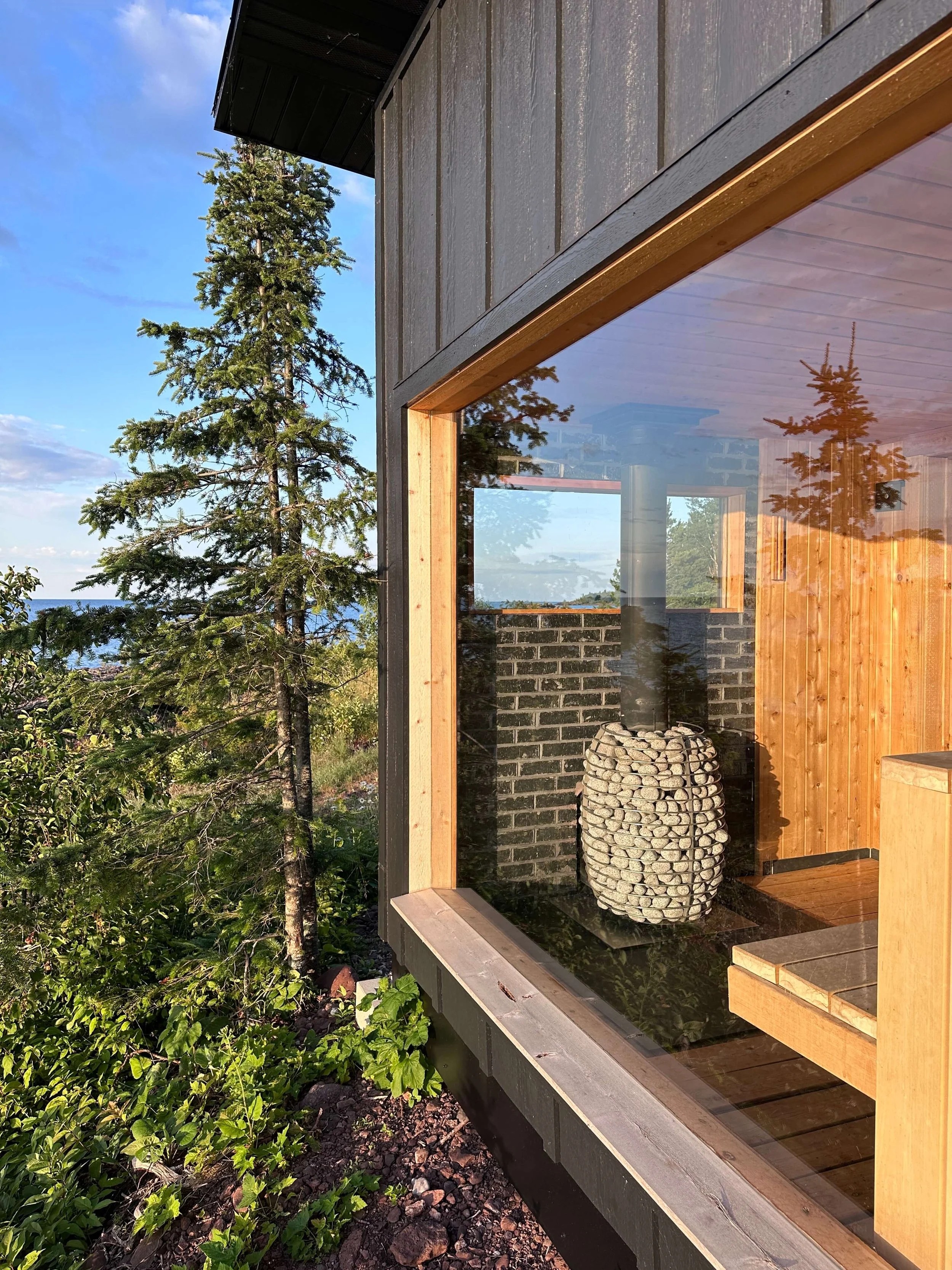 The coolest part of the sauna is the view. Inside the sauna, you have an unobstructed view of Lake Superior and if you book a sunset session, it is absolutely magical.