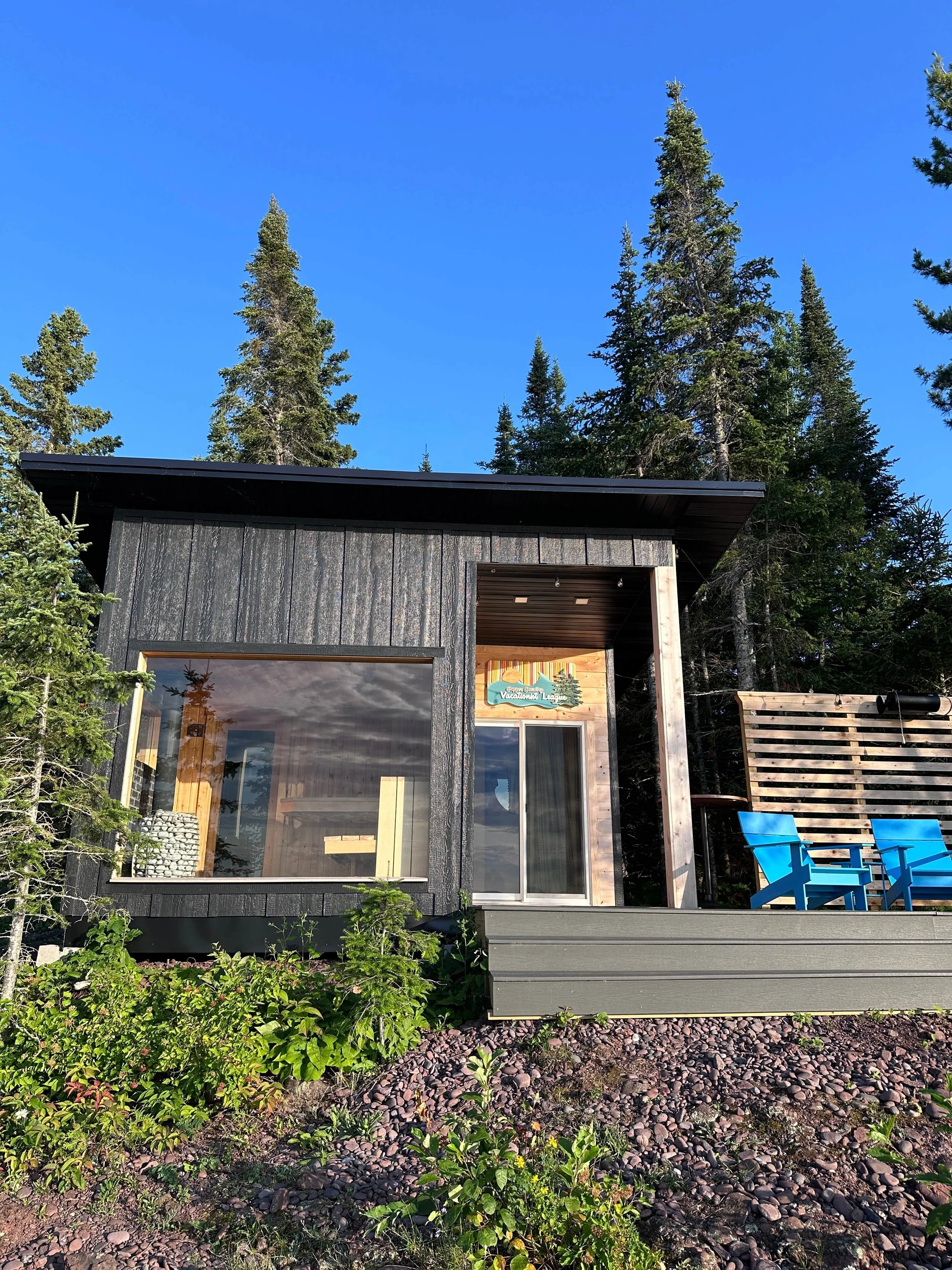 If you’re not ready to brave the chilly waters of Lake Superior, they have a waterfall shower outside for a quick and refreshing splash. There is also a firepit with Adirondack chairs available for lounging. The sauna shares the beach with the Fresh Coast cabins so you may see folks walking to the beach.