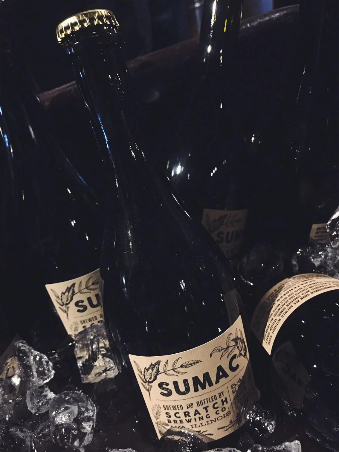 Sumac from Scratch, Ava, IL - Ryan has been talking about brewing a beer with sumac for years so I knew I had to try this one. This bottle conditioned beauty is brewed without hops, bittered and flavored with staghorn sumac, yellow clover and rested on toasted oak heartwood from their property. Bright, fresh, citrus
