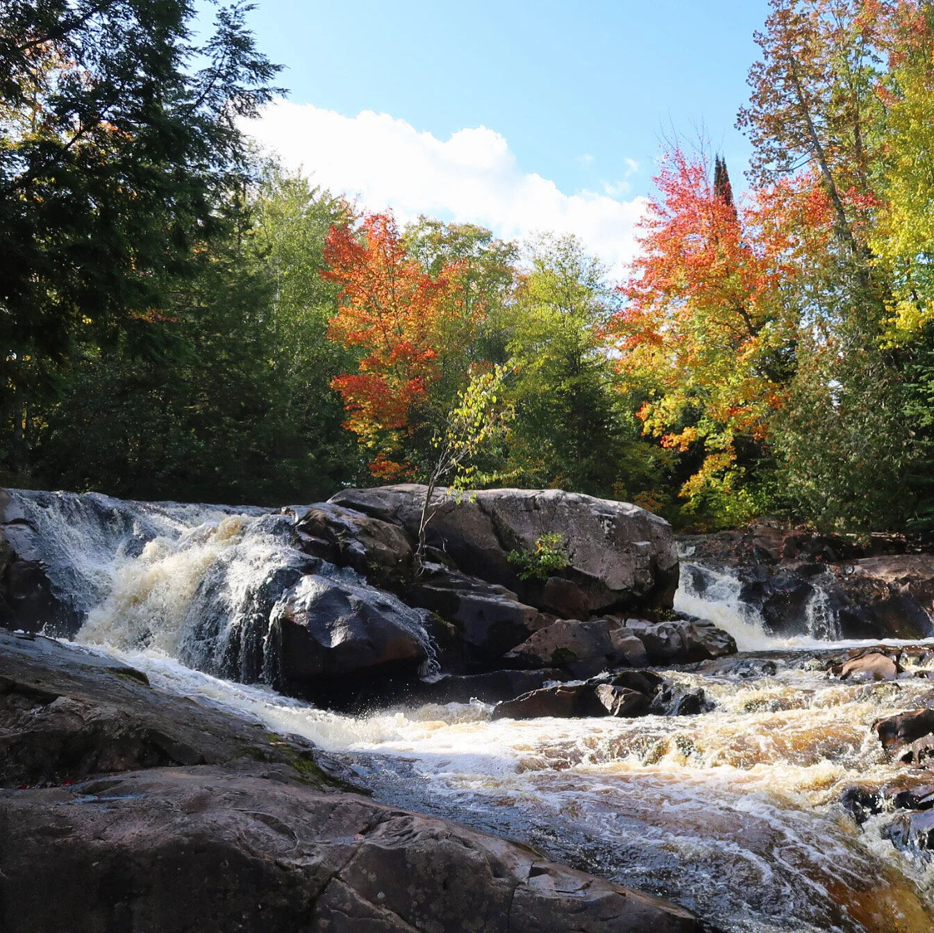 Dead River Falls is by far the easiest to visit if you’re in Marquette and is a good option if you don’t have a ton of time to commit to an outdoor adventure. To get there, head out of Marquette on Wright Street, turn right on Forestville Basin Trail, and veer to the left to stay on Forestville Road until you see the power plant. Park on the right-hand side and follow the path up the hill and you’ll see a set of stairs on your left; you should be able to hear the first set of falls as you go down the stairs. The hike to the first set is relatively easy, just mind roots and rocks. There are several drops at Dead River Falls and the journey gets more challenging as you continue on the trail. Keep a close eye out for little ones and dogs hiking with you because the rocks can be quite slick, and the trail is very steep at times. That being said, Dead River Falls is one of the most beautiful hikes in the area.